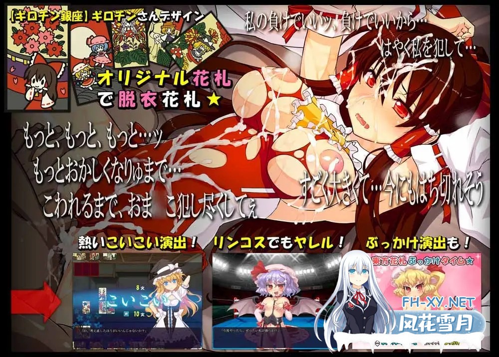 游戏简介 以超人气的东方作品为题材的略带 H 元素的花札(来々)游戏! 还搭载了能泼向女孩子喜欢的地方的原 ...