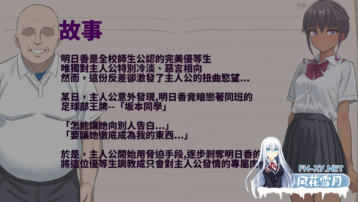 游戏介绍 明日香是全校師生公認的完美優等生 唯獨對主人公特別冷淡、惡言相向 然而,這份反差卻激發了主人公的扭曲慾望 ...